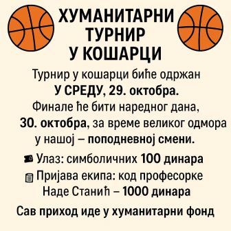 У среду, 29. октобра 2025. године, одржан је хуманитарни турнир у баскету 3×3. Учествовала је по једна екипа из сваког одељења.